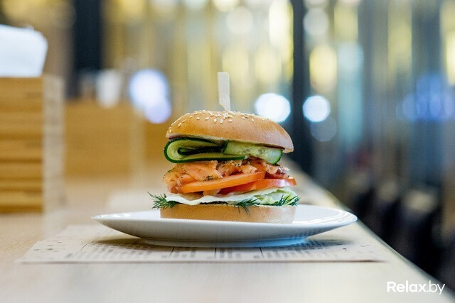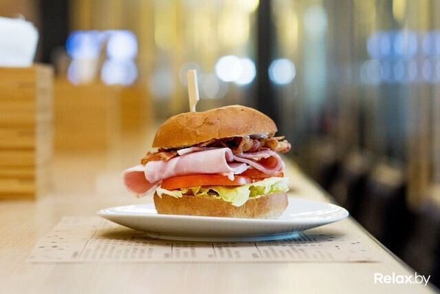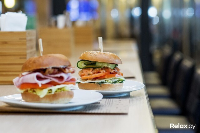 Почему образцы круассанов и бейглов? Потому что под каждый заказ кухня делает их из-под ножа, чтобы были свежими. Конечный вариант бейгла, надо сказать, раза в два больше выставочного. Есть классический с лососем, с ростбифом, с ветчиной и сыром, с пармской ветчиной и с хумусом и овощами гриль. Круассаны делают с томатами и яйцом, с куриной ветчиной и с лососем. Вместе с супом (чечевичный, тыквенно-морковный или борщ) в паре составят отличный сытный обед.