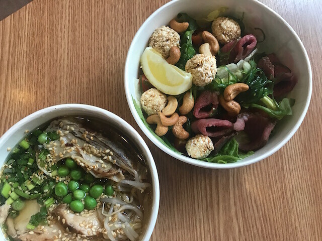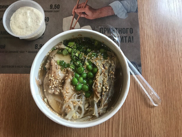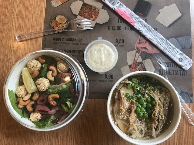 Вдобавок есть ланч-меню на каждый день. Например, полноценный обед из рамэна, коробочки с рисом и овощного салата обойдется в 8,9 рубля. Ланч-меню действует по будням с 11:00 до 16:00.