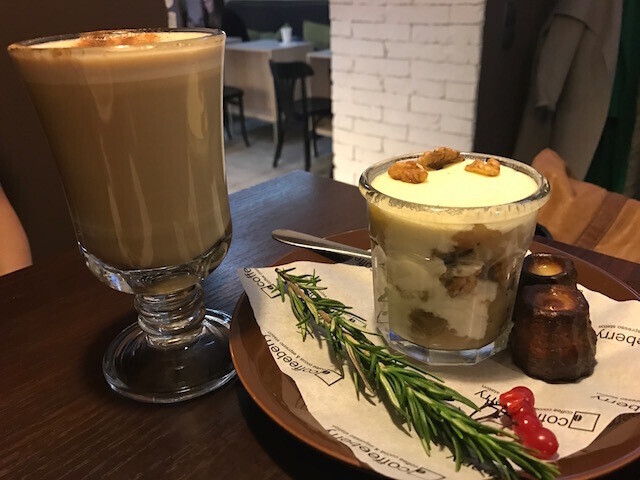 , уж очень красиво смотрелся сет на картинках. На деле он выглядит так же хорошо, но каннеле оказались пересушенными, а медово-яблочный трайфл, на мой вкус, слишком сладкий, собственно, как и медовый раф, пряности которого я не почувствовала совсем.