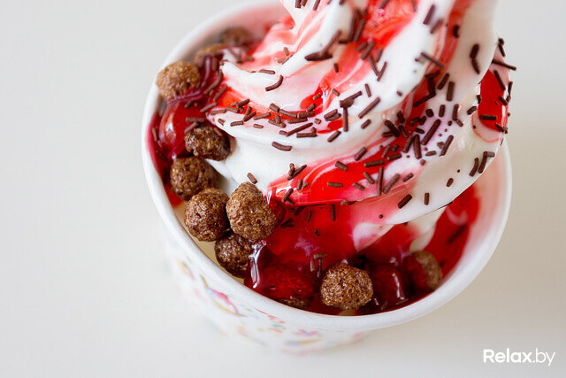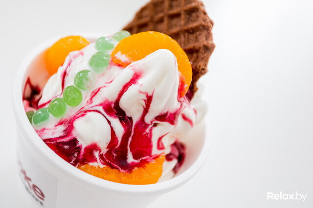 По желанию мороженое можно дополнить топпингами, консервированными фруктами, мюсли, шоколадными шариками, воздушной пшеницей или кусочками цукатов. Стоимость добавок зависит от размера порции: мини — 3 000 рублей, миди — 4 000 руб лей, макси — 5 000 рублей.