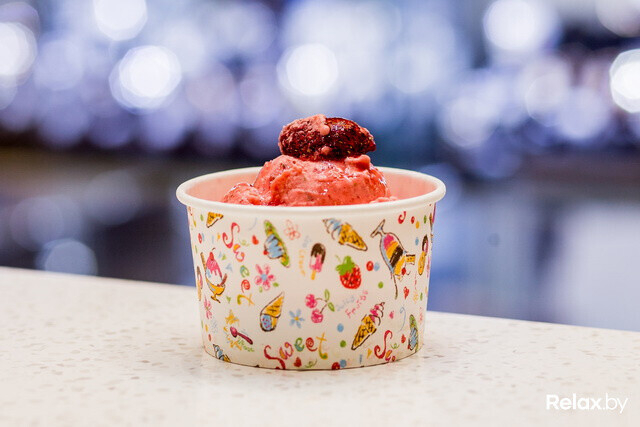 На островке в ТЦ «Экспобел» можно попробовать мороженое со вкусом белого шоколада, лимона, апельсина, смородины, мяты, амарено, клубники, карамели, «бабл гам», банана, какао, ванили, яблока и темного шоколада. Последний вкус — один из самых популярных, так как найти что-то подобное в столичных кафе сложно. Ягодные десерты больше похожи на сорбеты.