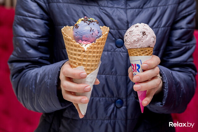 Помимо стандартных шоколадного и ванильного вкусов, в Baskin Robbins можно попробовать, например, виноградный лед, клубничный сорбет, радужный щербет, карамелевый трюфель, королевскую вишню без сахара, французский тост, спелую дыню, бейсбольный орешек и другие. Дополнить десерт можно различными топпингами.