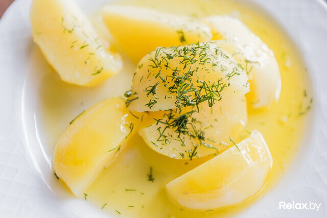 Свекольный холодник с печеным картофелем и «пьяным» яйцом