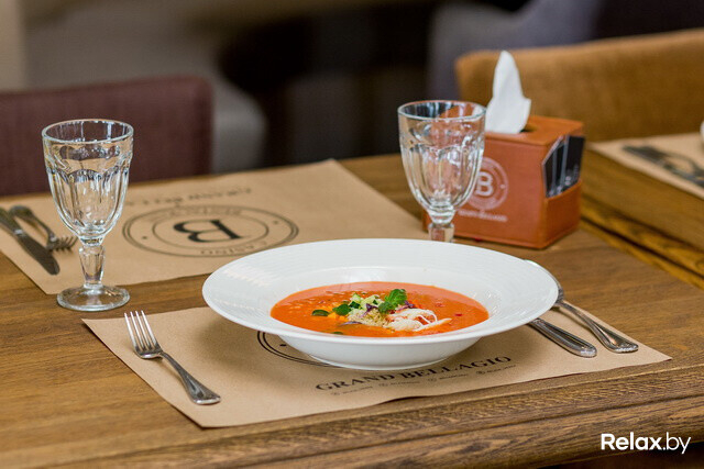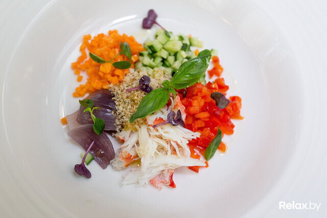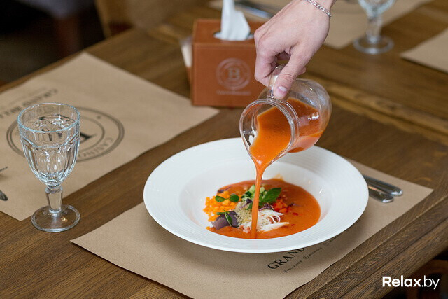 Такой холодный суп, как гаспачо, можно найти во многих столичных заведениях, но с мякотью краба — только в , где блюдо готовят по рецепту итальянского повара Марко Якетта.