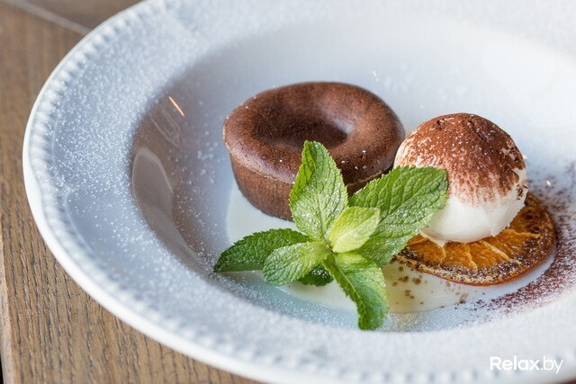 Шоколадный флан готовится из яиц, муки, сахара и, конечно же, шоколада. Пока одни компоненты взбиваются и перемешиваются, шоколад растапливается на паровой бане. Последний будет нашей начинкой. Изюминка блюда — добавление в него рома на финальной стадии. Несмотря на то, что это алкогольный напиток, он дает отличный аромат. Отдельного внимания заслуживает вкуснейший соус. Он готовится из желтков, которые подбиваются на водяной бане вместе со стручком ванили и сахаром. Как только масса увеличивается в несколько раз, постепенно вводятся перемешанные сливки с молоком. Затем десерт охлаждается и подается с ванильным мороженым, которое, к слову, готовится тут же. Холодное мороженное и горячая шоколадная начинка дарят самые приятные впечатления и точно не оставят равнодушным.