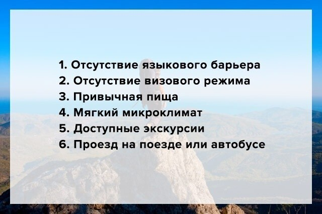 Эти пункты становились весомыми аргументами для выбора одного из крымских курортов, даже несмотря на очевидные минусы, связанные со всё более заоблачными ценами и, скажем честно, далеко не блестящим сервисом. В то же время многие страны уже давно располагают названными плюсами, не говоря об абсолютно уникальных собственных.