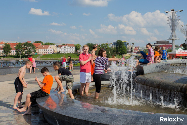 А почему бы и нет? Да и прохлада вам будет обеспечена. Вот вам ориентировка на фонтаны в центре столицы: на Немиге (справа от Дворца спорта); на Октябрьской площади (справа от Дворца Республики; кстати, это самый большой фонтан столицы); в Александровском сквере (самый старый фонтан Минска); на площади Независимости.