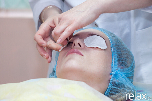 11. По окончании процедуры косметолог наносит на кожу минералы, растворённые в воде, крем для век и питательный крем для лица.