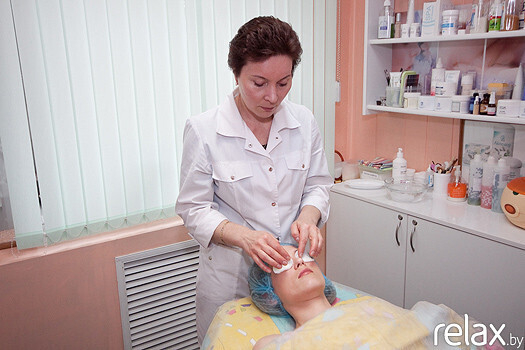 1. Итак, Ирина приступает к выполнению процедуры, и для начала она делает клиентке демакияж.