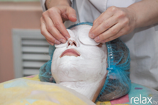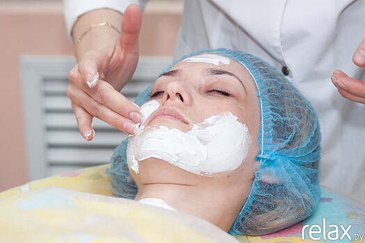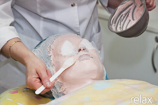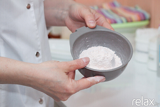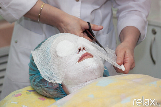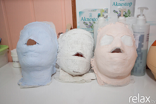8. Основной этап — гипсовая маска. Она наносится на 15 минут. Косметический гипс при добавлении воды благодаря соединениям Mg начинает выделять тепло. Такая маска отлично прогревает ткани, кожа начинает активно принимать все полезные вещества, которые содержатся в ухаживающих препаратах, нанесённых ранее. Уложенная ровным слоем гипсовая маска формирует правильный овал лица, уменьшает жировые отложения в области щек и двойного подбородка, улучшает микроциркуляцию и дренажные свойства мягких тканей лица, предотвращает преждевременное старение, улучшает микроциркуляцию, усиливает обменные процессы, поддерживает естественную регенерацию, разглаживает и подтягивает кожу, глубоко увлажняет, очищает от загрязнений, освежает уставшую дерму. Помимо многочисленных косметических эффектов, такая маска позитивно влияет на психоэмоциональное состояние человека: он, оказавшись «в скорлупе», расслабляется, отстраняется от суеты.