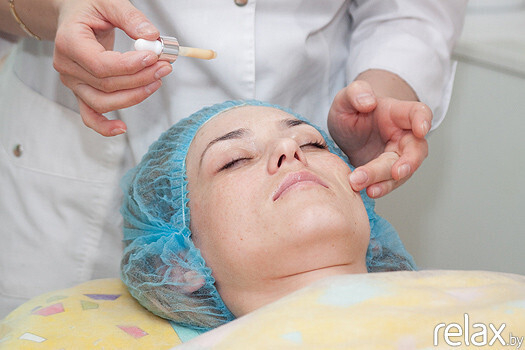 На кожу лица клиентки мастер наносит специальную сыворотку, содержащую агенты глубокого проникновения. Она делает кожу проницаемой, что улучшает работу последующих средств.