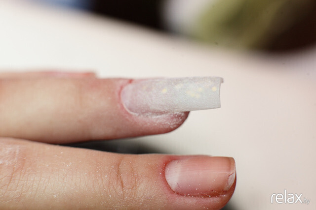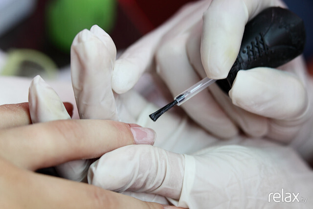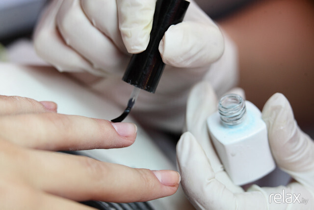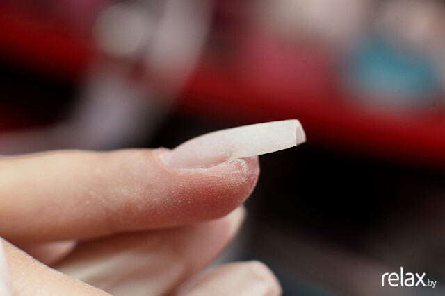 Затем — нанесение специальной грунтовки. Лишняя жидкость и оставшиеся загрязнения удаляются, ноготь обезжиривается.