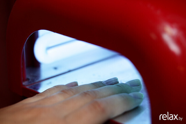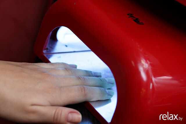 После нанесение первого слоя геля проводится его сушка под лучами ультрафиолетовой лампы в течение 2 минут. Под воздействием ультрафиолета гель застывает.