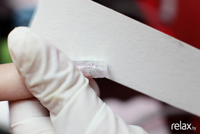 Поверхность ногтя шлифуется, снимается его верхняя жировая пленка и блеск. Это делается для лучшего сцепления геля с ногтевой пластиной.