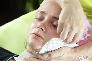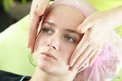 В данном случае мастер имеет дело с раздраженной, шелушащейся кожей, поэтому для процедуры она выбирает эфирное масло «Спокойствие» (с натуральными маслами лаванды, ромашки и розового дерева). Массаж начинается с точечных нажатий, за которыми следуют плавные, расслабляющие движения рук мастера.