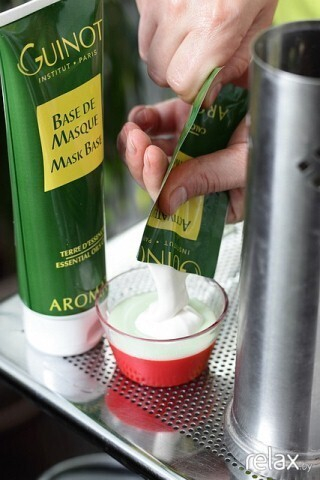 На лицо наносится маска, состоящая из нескольких компонентов: маски-базы Aromatic, активатора маски и активных концентратов («Цветок апельсина» и «Сиреневый просвирник»). Приготовление индивидуальной маски происходит на глазах клиента. Aromatic Guinot сочетает в себе концентрат про-коллагена, витамин С и природные ароматизаторы, которые способствуют расслаблению. Существует до ста индивидуальных составов моделирующего средства, поэтому подобрать маску, подходящую для каждого клиента не составляет труда.