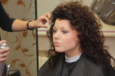 За время выполнения макияжа волосы высохли. Теперь можно приступать к их оформлению. Главное в прическе — естественность локонов, поэтому для фиксации используется стайлинг подвижной фиксации.