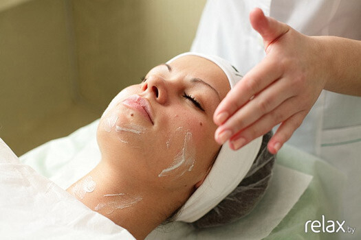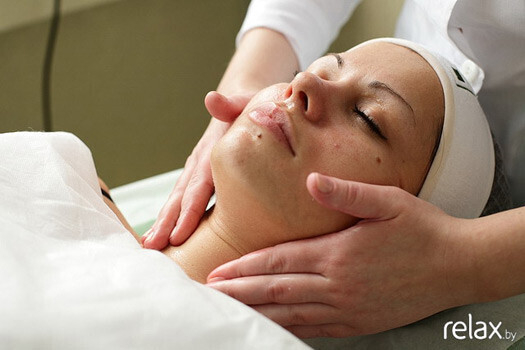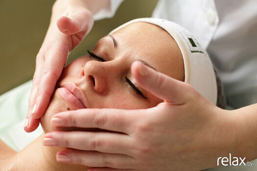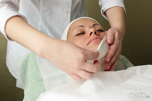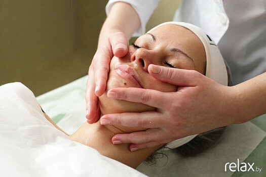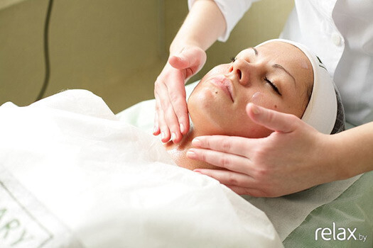 4. Затем в течение нескольких минут проводится легкий массаж лица и шеи.