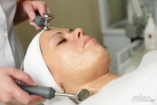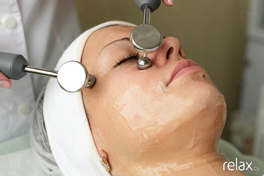 7. Вначале настраивается необходимая мощность аппарата, которая подбирается под определенный тип кожи и степень сложности проблемы. После этого электродами водят по коже, совершая дренирующие движения (сверху вниз) ― это способствует оттоку жидкости, выведению токсинов, отчего кожа начинает дышать. Воздействие заряженного тока дает омолаживающий эффект: разглаживаются морщинки, улучшается контур лица. Сначала процедура проводится на одной половине лица, затем на другой.