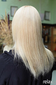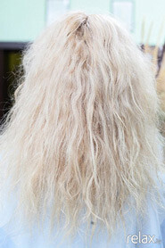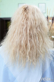 Специалист покрывает волосы протеином (который обволакивает их и полирует чешуйки), а затем подвергает термообработке.
