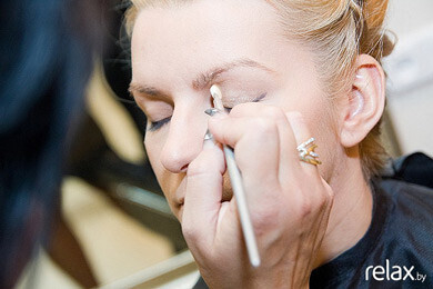 7. Светлыми тенями прокрашивается нижнее веко. Это зрительно увеличит глаза.