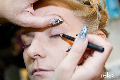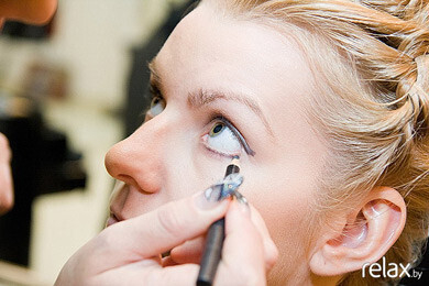 4. Глаза подводятся черным карандашом сверху и снизу.