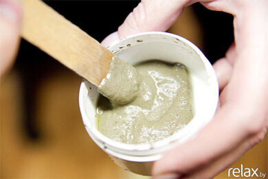 11. Остатки скраба снимаются сухой салфеткой и далее следует грязевое обертывание. Состав обязательно слегка подогревается. В это время готовится пленочка.