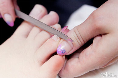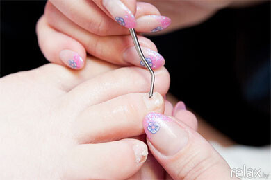6. Работа с ногтями. Длина ногтя оставляется по желанию клиента. Уголочки слегка закругляют, чтобы ногти не врастали в кожу.