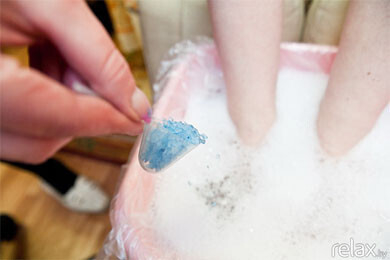 2. На 10-15 минут (длительность зависит от состояния ног клиента) ноги опускаются в теплую ванночку с добавлением ароматной морской соли.