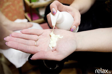 14. На кожу наносится крем и проводится массаж ног до колен.