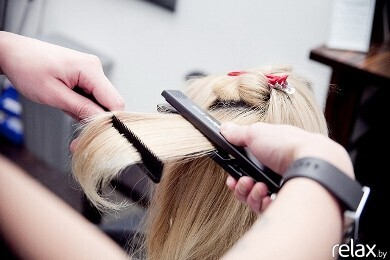 3. Далее стилист сушит волосы, одновременно аккуратно расчесывая их. После этого он снова разделяет волосы на пряди по 5-7 сантиметров и горячим утюжком разглаживает их от корней до самых кончиков. Температура утюжка «запечатывает» питательные вещества внутрь волоса, что надолго удержит их там и обеспечит максимальное выпрямление.
