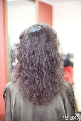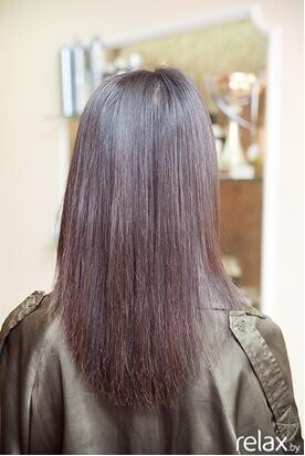 Через некоторое время маску смывают и начинают укладывать волосы. Уже прямые.