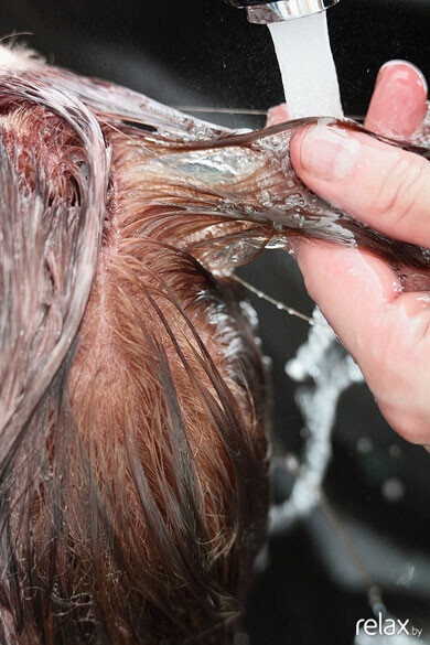 Смываем бальзам тёплой водой.