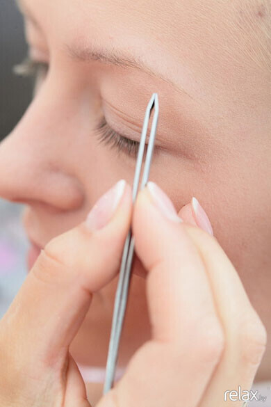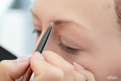 Корректируем форму бровей, подкрашиваем их тенями.