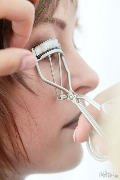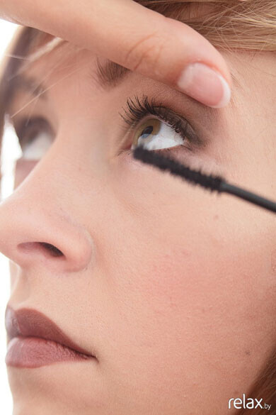 Подкрашиваем ресницы тушью.