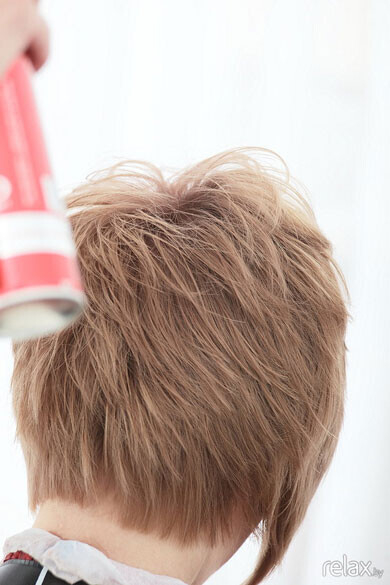 С посмощью утюжка делаем акценты. Наносим немного средства для стайлинга на отдельные пряди и закрепляем укладку лаком для волос.