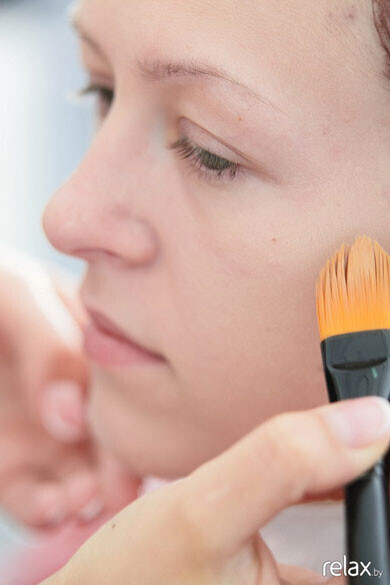 Минимум за 20 минут до начала макияжа наносим на кожу питательный крем. Наносим на кожу основу «MAK» (США). Оставшиеся дефекты убираем корректором.