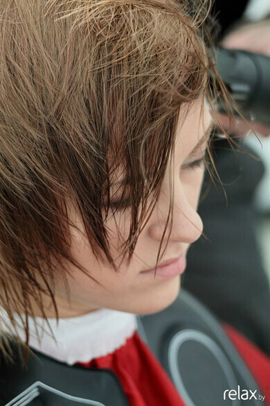 Начало изменений имиджа — это смена прически. Её нужно выбрать исходя из состояния кожи, высоты лба, формы ушей, типа лица и т. д. Дашины перевоплощения стартуют со смены цвета волос. Максим решил сделать ей колорирование с эффектом 3D.