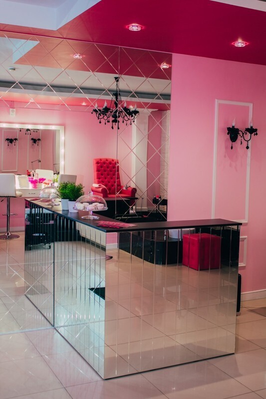 Больше всего понравится любительницам розового — именно в этом цвете оформлен интерьер салона, сочетающий в себе как классические, так и современные декоративные элементы. Удобное зонирование пространства помогает добится непринужденной атмосферы и комфорта.