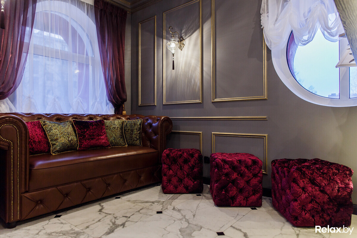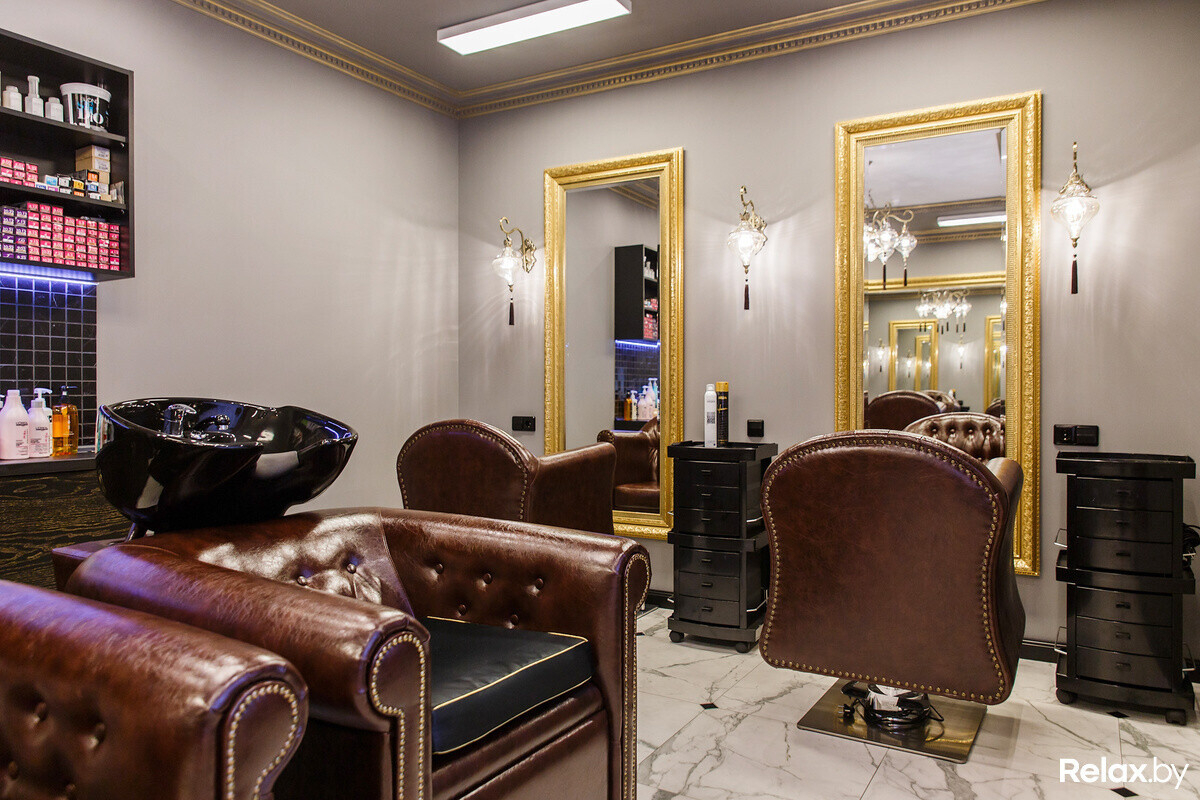 Стиль нового салона — классика с нотками роскоши; использованы преимущественно теплые пастельные оттенки, акцентами выступают позолоченные элементы декора, солидная мебель, изготовленная по индивидуальному заказу, и аксессуары ручной работы. Гостей тут угощают кофе, чаем, фруктами и даже шампанским.