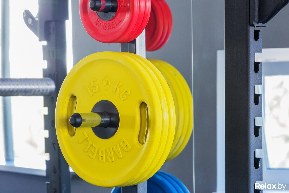 - зона свободных весов: представлены профессиональные олимпийские грифы и 3,5 тонны «блинов», а также гантели весом от 2,5 до 50 кг и поменьше — от 1 до 10 кг;
