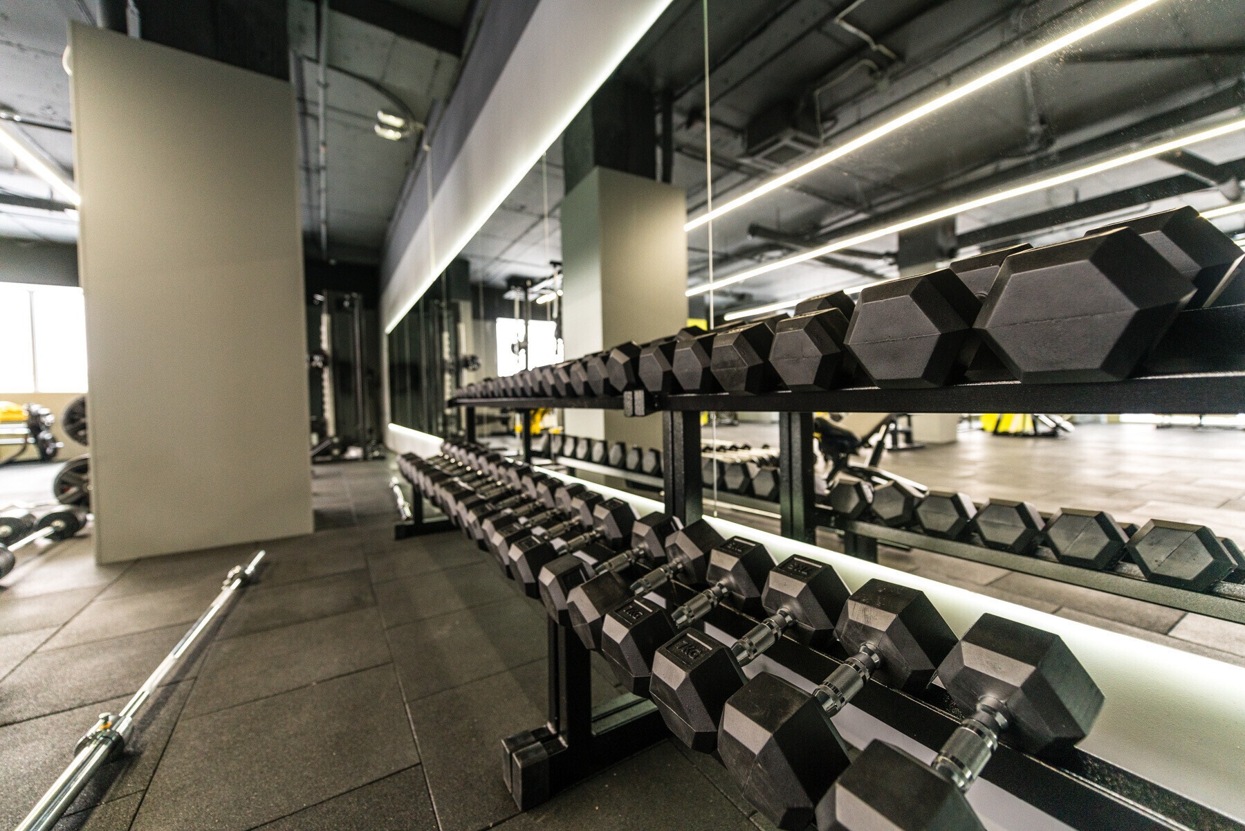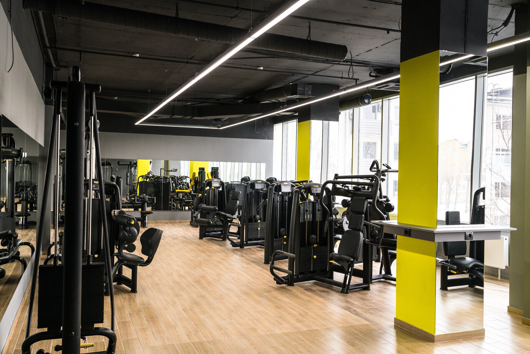 Сам фитнес-клуб занимает площадь 800 квадратных метров и состоит из нескольких зон: