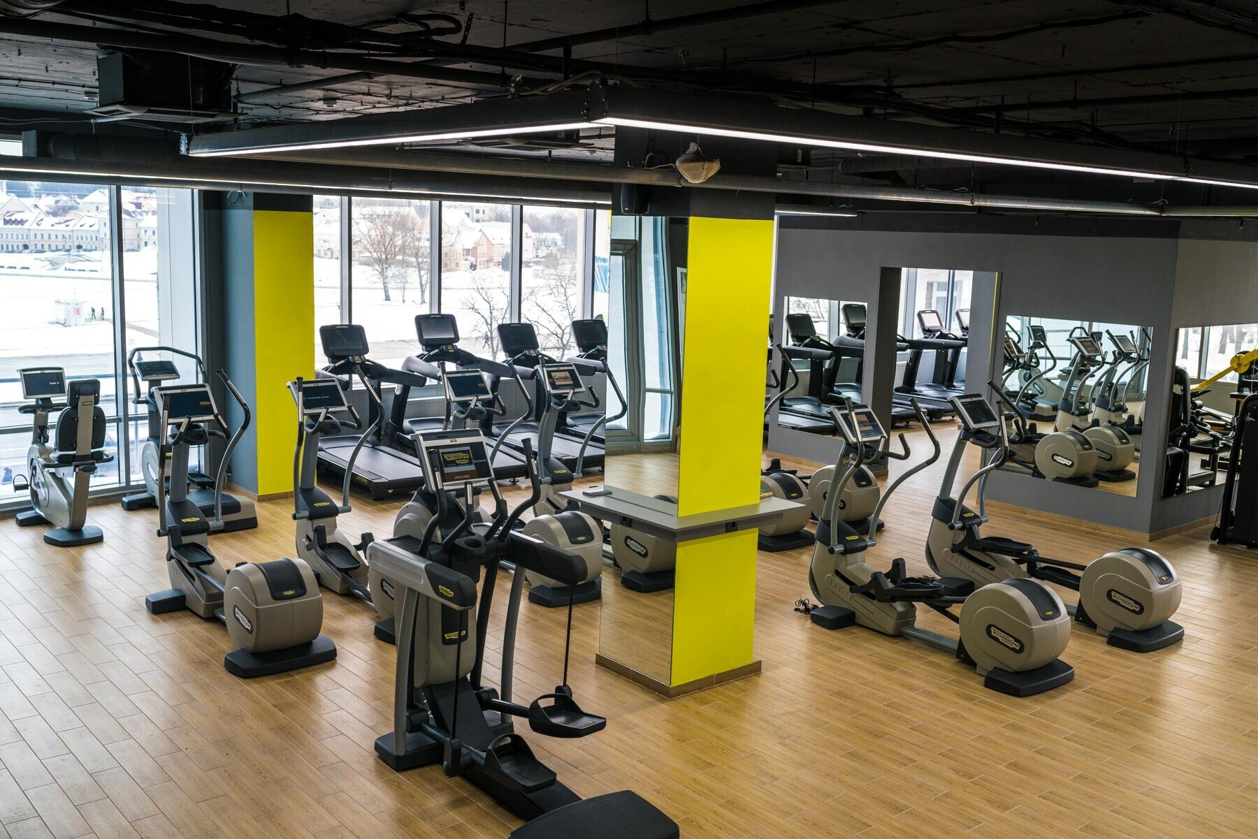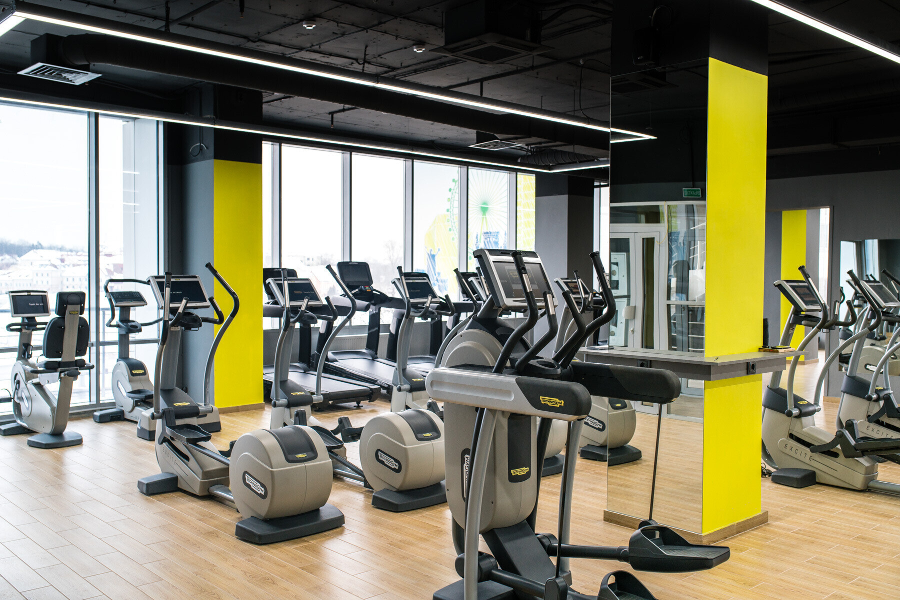 — зона блочных тренажеров — оборудование компании Technogym;