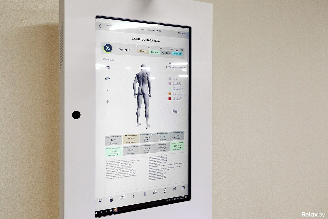 — С порога наши администраторы погружают клиента в атмосферу заботы. Мы хотим, чтобы эта идея была ключевой в нашей студии, чтобы каждый человек был уверен, что о нем позаботятся и ему помогут. На ресепшн клиент заполняет анкету, где рассказывает о том, с какой целью пришел к нам. После этого нужно пройти специальное тестирование. Это не страшно, не больно, а может, даже приятно. Процедура тестирования осуществляется за короткий промежуток, без очередей и исключительно с профессиональным подходом, ведь все наши специалисты имеют высшее образование. Нашей изюминкой можно назвать аппарат для тестирования, который предоставляет данные о физической форме посетителя. Пациент увидит информацию о состоянии мышечного корсета; соотношение воды в организме; показатели мышечной и жировой ткани; степень ожирения: общую оценку физического состояния. Последний этап тестирования представляет собой консультацию тренера и планирования индивидуальных тренировочных программ. Каждая тренировка уникальна, длится больше часа и все это время в сопровождении со специалистом.